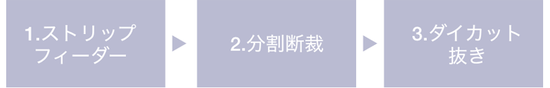 リードマシンで製造されたストリップ(2丁付け冊子)がダイカット抜きにより、出口ではパスポートサイズ(88mm x 125mm)の冊子となって出てきます。またこのシステムは次工程のレーザーパーフォレーションシステムに繋げることも可能です。